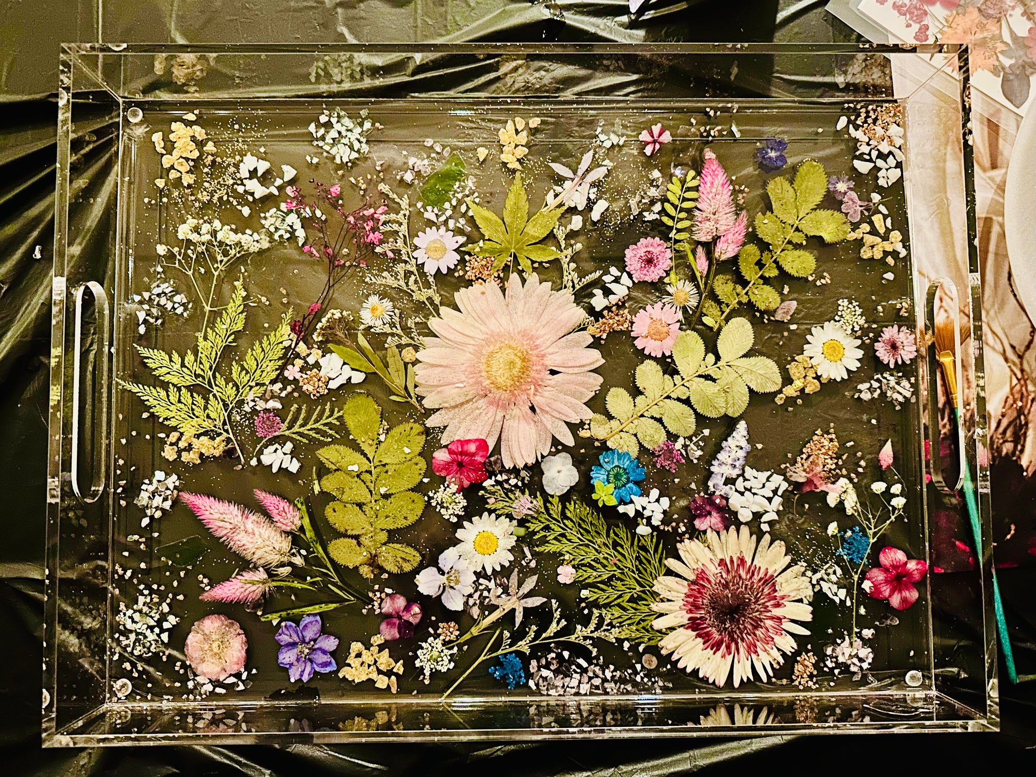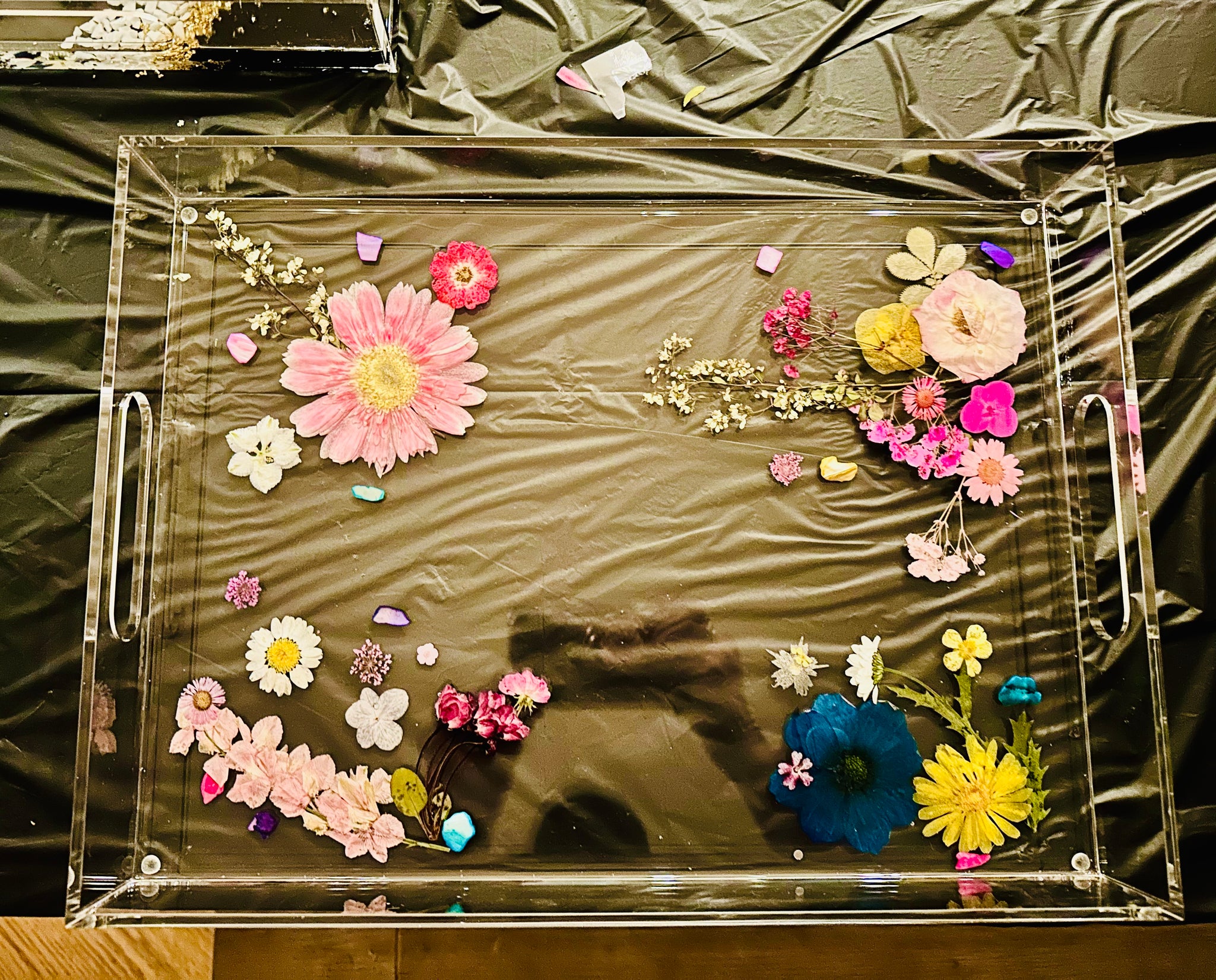 Gather your friends and get some Wine & Craft therapy at Happy Daisy Art Studio! Bring wine or your drink of choice and learn to create a gorgeous crushed glass creation! We will use the 12x16 Clear Acrylic Trays shown and pour resin at the end. Artist/Owner Jillianne Renee of Happy Daisy will teach it step by step.