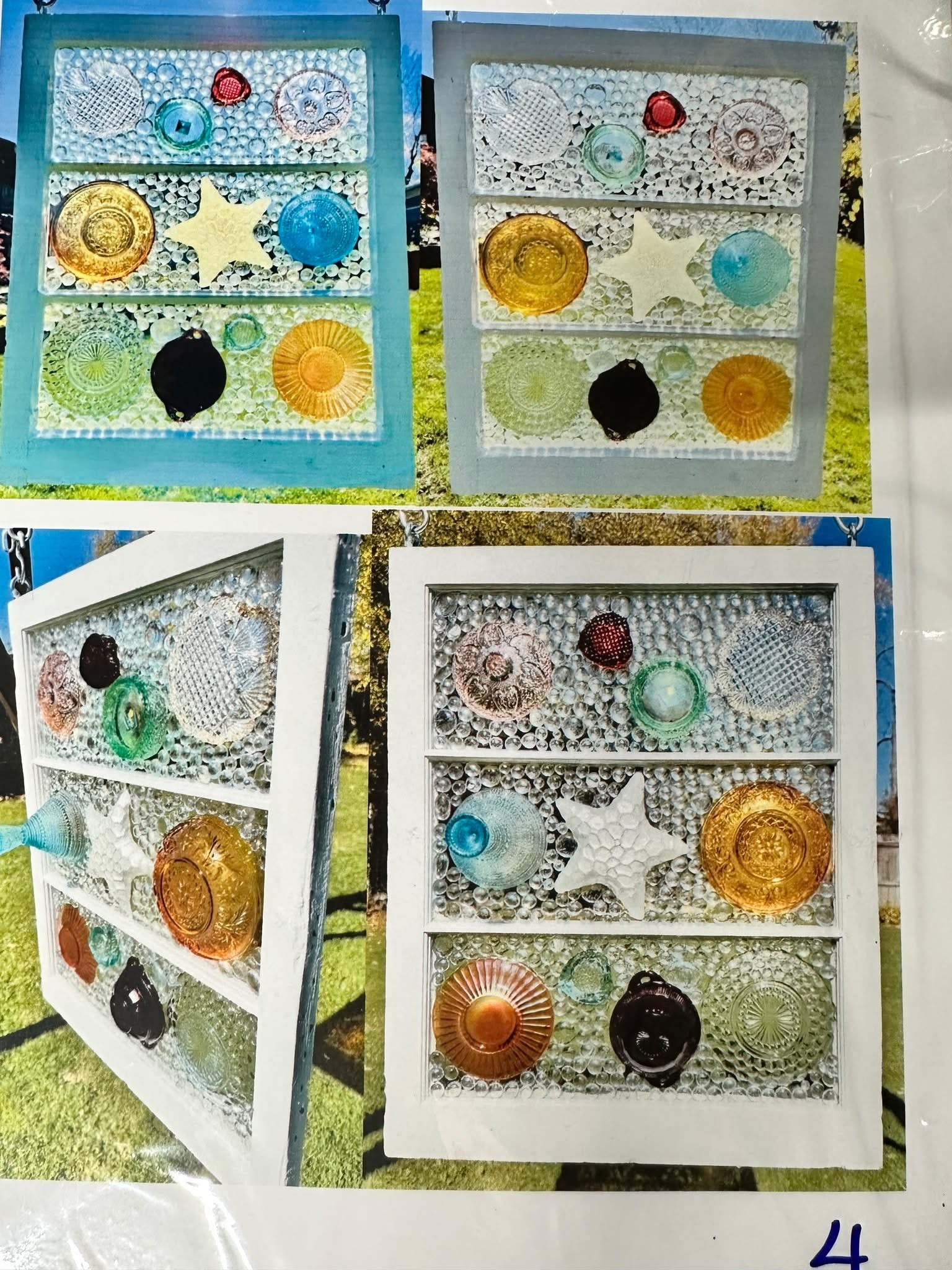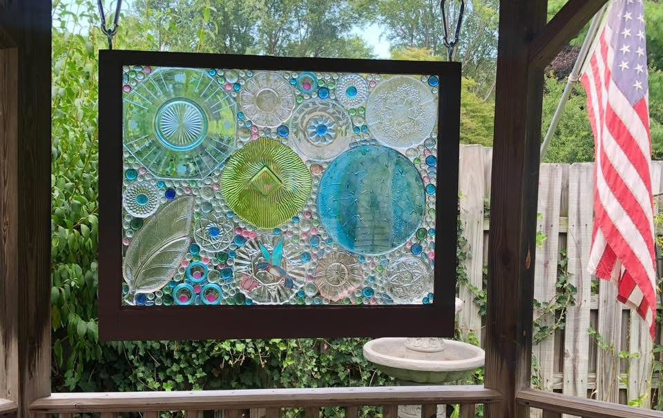 I would appreciate it if each person brought at least 5-6 plates or accent pieces. If you plan to choose a larger sized window then you can bring more. You can see how many plates the larger ones have in the inspiration photos. You can also just do the scene with the flowers or other designs, which wouldn’t require many plates. I will have some great colorful plates on hand to add to your windows too. Vintage/Resale shops like True North 1 & 2, Chic Geek & Antique, Good Will, and Tchotchkes are great. Also, there’s an awesome variety of Vintage/Thrift shops in Wilmington!