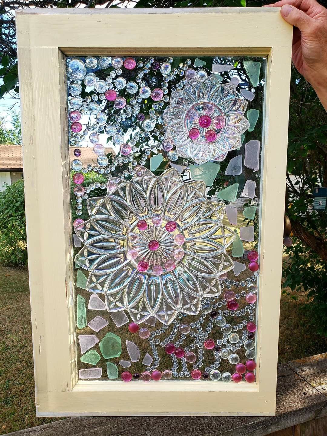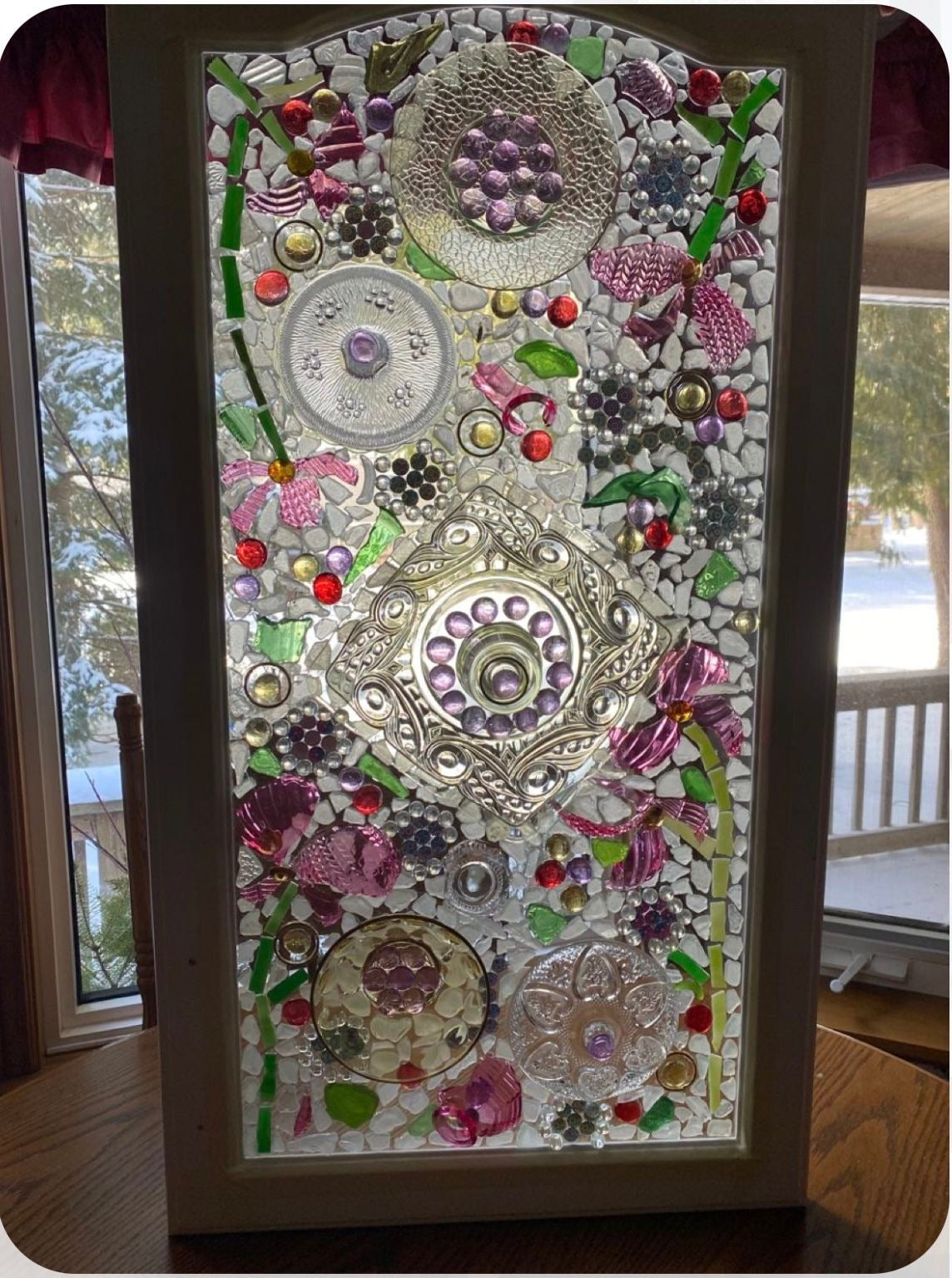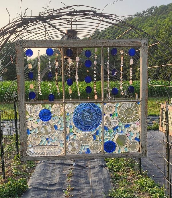 I would appreciate it if each person brought at least 5-6 plates or accent pieces. If you plan to choose a larger sized window then you can bring more. You can see how many plates the larger ones have in the inspiration photos. You can also just do the scene with the flowers or other designs, which wouldn’t require many plates. I will have some great colorful plates on hand to add to your windows too. Vintage/Resale shops like Covet, Milltown Market, art 66 Antiques, True North 1 & 2, Chic Geek & Antique, and Tchotchkes are great. Also, there’s an awesome variety of Vintage/Thrift shops in Wilmington!